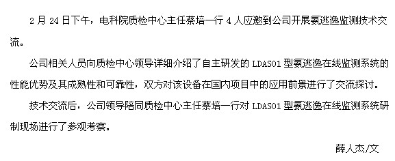 公司與電科院質(zhì)檢中心開展氨逃逸監(jiān)測技術(shù)交流