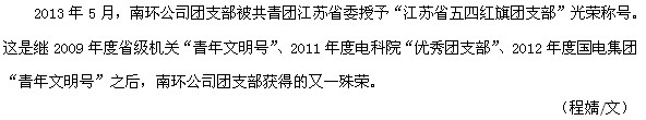 南環(huán)公司團支部榮獲2012年度“江蘇省五四紅旗團支部”稱號