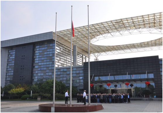 早上8點(diǎn)20分,全體員工準(zhǔn)備就位。8點(diǎn)30分升國(guó)旗儀式正式開始。隨著莊嚴(yán)雄壯的《義勇軍進(jìn)行曲》奏響,鮮艷的五星紅旗冉冉升起,迎風(fēng)飄揚(yáng)。在場(chǎng)的每一個(gè)人向國(guó)旗行注目禮,深懷對(duì)祖國(guó)無限的熱愛和崇高的敬意。