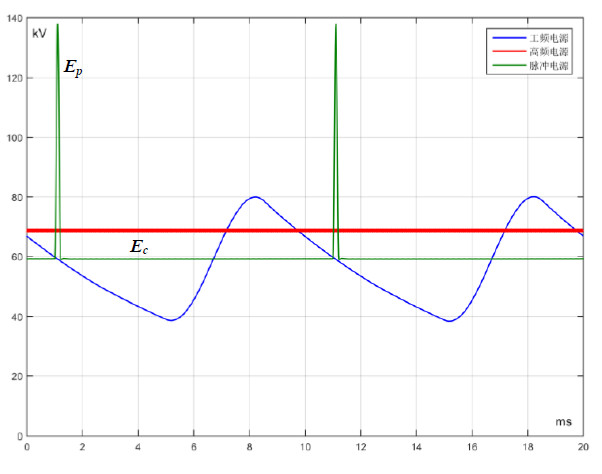 基礎(chǔ)源的輸出電壓一般在60kV~80kV,脈沖源的電壓脈沖高達(dá)80kV,兩者疊加合成后,在瞬間形成一個高達(dá)140kV的高壓脈沖供給電除塵器電場,其峰值電壓遠(yuǎn)高于電除塵器在使用常規(guī)電源供電時的擊穿電壓。