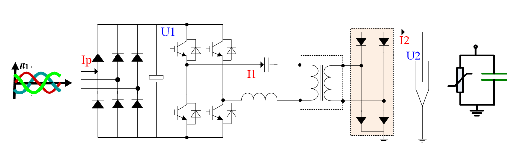 HF系列電除塵器高頻電源采用串聯(lián)諧振電路設(shè)計(jì),把三相交流電整流為直流電,通過(guò)逆變電路形成高頻交流電,再經(jīng)高頻整流變壓器升壓整流后,輸出高頻脈動(dòng)電流至電除塵器,其工作頻率一般在20kHz~50kHz 。