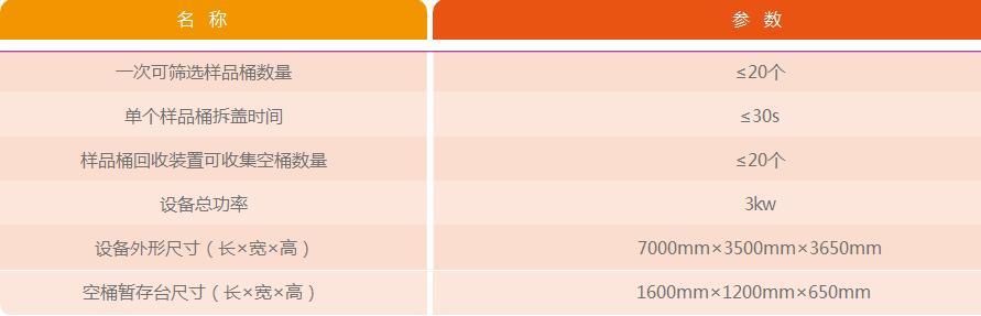 煤樣篩選裝置主要由煤樣桶自動(dòng)篩選及輸送裝置、自動(dòng)開蓋裝置、自動(dòng)提桶倒料裝置、空桶回收平臺(tái)、桶蓋回收裝置及電控系統(tǒng)等組成。通過(guò)與管控系統(tǒng)聯(lián)接,自動(dòng)識(shí)別煤樣批次編碼并篩選出需制備的煤樣。