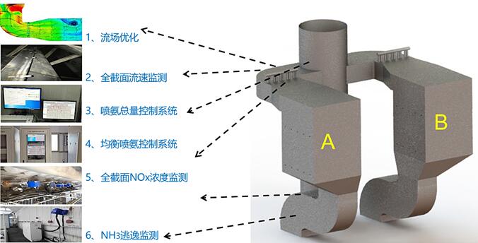 目前,對于絕大部分燃煤電廠的噴氨控制,主要存在流場和NOX濃度場分布不均、無法實現分區(qū)域噴氨、噴氨控制無法及時響應工況變化等三個方面的問題。為了實現智能噴氨,必須對流場進行優(yōu)化,采用更科學的全截面監(jiān)測方法,更先進的控制策略和更精準的控制模型,對噴氨總量和各個支路的噴氨量進行控制,實現分區(qū)域精細化噴氨。
