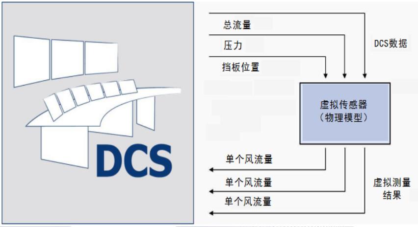 “風(fēng)量虛擬測量系統(tǒng)”中的虛擬傳感器并不以實物存在,而是轉(zhuǎn)換成軟件的傳感器。這些傳感器從其它可用的數(shù)據(jù)源如DCS中計算出測量讀數(shù)。一個基本的物理電廠模型強(qiáng)化因果關(guān)系。