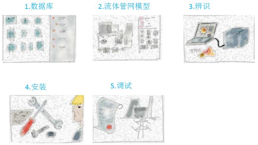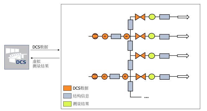 流體管網(wǎng)模型的構(gòu)建是來源于根據(jù)工藝管道及儀表流程圖中的所有系統(tǒng)部件數(shù)據(jù)庫。采用電廠的歷史數(shù)據(jù)對模型進(jìn)行辨識和檢驗。接下來,把虛擬傳感器集成到DCS的結(jié)構(gòu)中,然后進(jìn)行系統(tǒng)調(diào)試并檢驗結(jié)果。