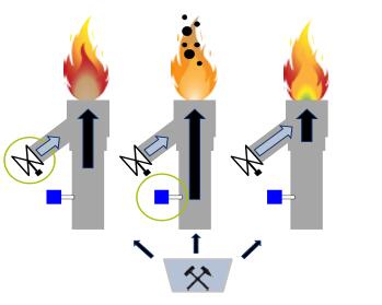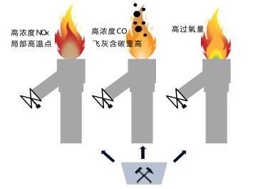 空燃比控制策略對于加熱器、鍋爐、高爐等的燃燒系統(tǒng)的安全經(jīng)濟運行極其重要。特別是對于現(xiàn)代低NOx燃燒器來說,空燃比對燃燒質(zhì)量會產(chǎn)生一系列的影響,風煤比不匹配所產(chǎn)生的不良工況能導致較高的飛灰含碳量、較高的排放、鍋爐效率降低以及受熱面超溫。