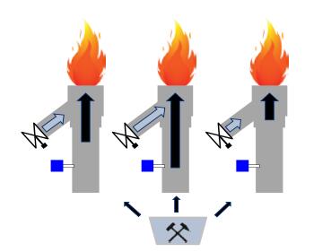 由于缺少每個燃燒器風煤比數(shù)據(jù),電廠運行人員必須面對效率低下的運行工況,其結(jié)果是飛灰含碳量高、排放高、鍋爐效率低以及受熱面金屬超溫。如果能確保正確的風煤比值,就能通過燃燒過程的優(yōu)化增加效率、降低排放和結(jié)焦。所有燃燒器風煤比管理系統(tǒng)能夠直接調(diào)節(jié)每個燃燒器的風煤比,這是燃燒過程最為關鍵的參數(shù)。